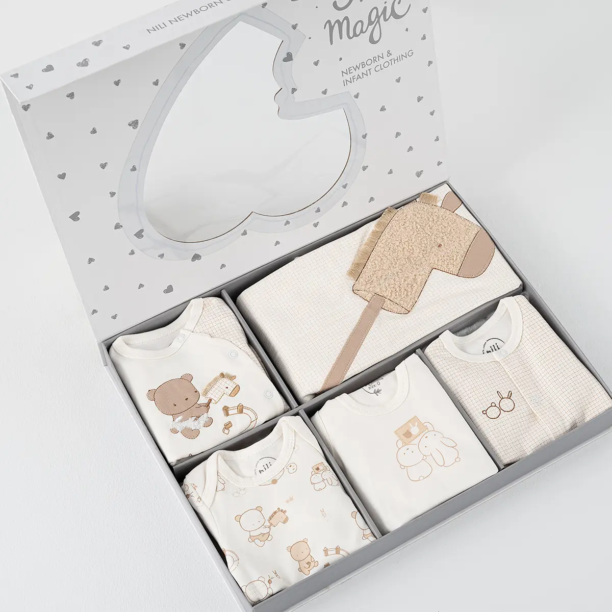 ست 13 تیکه بیمارستانی طرح بیبی یک پکیج کامل و ضروری است که با نهایت دقت و کیفیت برای استقبال از نوزاد دلبند شما در بیمارستان و روزهای اولیه تولد آماده شده است. این ست شامل تمامی پوشاک و لوازم ضروری نوزاد تازه متولد شده، از جمله لباسهای زیر و رویی، دستکش، کلاه، پاپوش و حوله میشود. جنس تمامی تکهها ۱۰۰٪ پنبهای بوده و کاملاً ضدحساسیت و نرم است تا هیچ گونه آسیبی به پوست لطیف نوزاد وارد نشود و راحتی او را در طول روز و شب تضمین کند. طرح ساده و شیک “بیبی” به همراه رنگهای آرامشبخش، این مجموعه را به انتخابی عالی برای والدینی تبدیل میکند که به دنبال کیفیت، سادگی و ظاهری آراسته برای نوزاد خود هستند. ست 13 تیکه بیمارستانی طرح بیبی یک آیتم کلیدی در لیست خرید سیسمونی است.