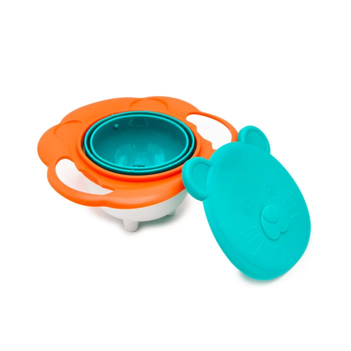 ظرف غذای چرخشی ۳۶۰ درجه (Gyro Bowl)، راه حلی هوشمندانه برای خداحافظی با ریختوپاشهای وقت غذا است. این محصول که با الهام از ساختار سیاره کیوان و اصل پایداری ژیروسکوپی طراحی شده، یک نوآوری جذاب در لوازم غذاخوری کودک به شمار میرود. ساختار این ظرف به گونهای است که کاسه داخلی آن همواره به سمت بالا باقی میماند و حتی اگر کودک آن را بچرخاند یا وارونه کند، محتویات غذا (مانند غلات خشک، اسنک یا تکههای میوه) به بیرون نمیریزد. این ویژگی منحصربهفرد، به والدین کمک میکند تا دوران شروع غذای کمکی و مستقل غذا خوردن کودک را با استرس و کثیفکاری بسیار کمتری مدیریت کنند. جنس این ظرف غذای چرخشی ۳۶۰ درجه معمولاً از پلاستیک مقاوم و با دوام و فاقد مواد شیمیایی مضر مانند BPA است که ایمنی فرزند شما را تضمین میکند.