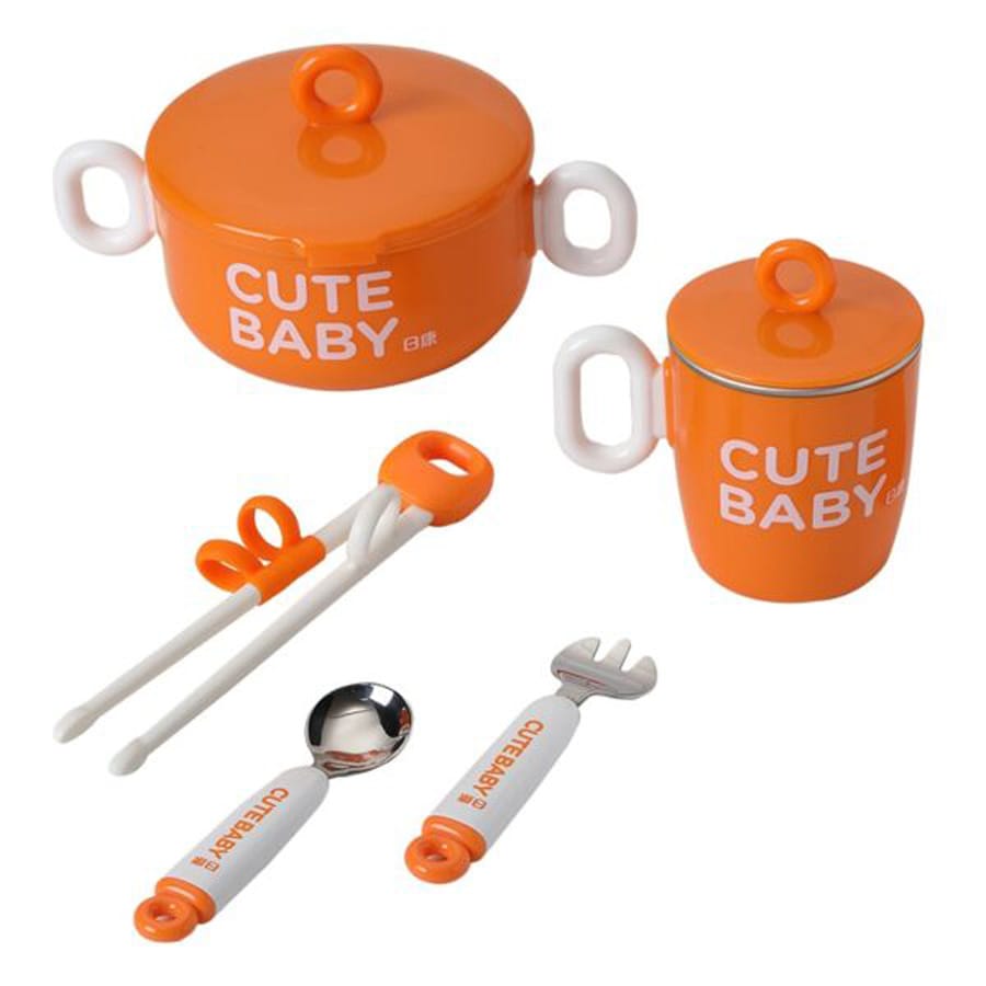 - شامل لیوان و کاسه و قاشق و چنگال و چسبان کف ظرف آموزشی